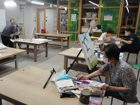 共通していることは「絵を描くこと」。あとは年齢も職業も様々な皆さんが、それぞれのペースで、好きなテーマを好きな画材を使って自由に絵を描きながら交流を深めています。